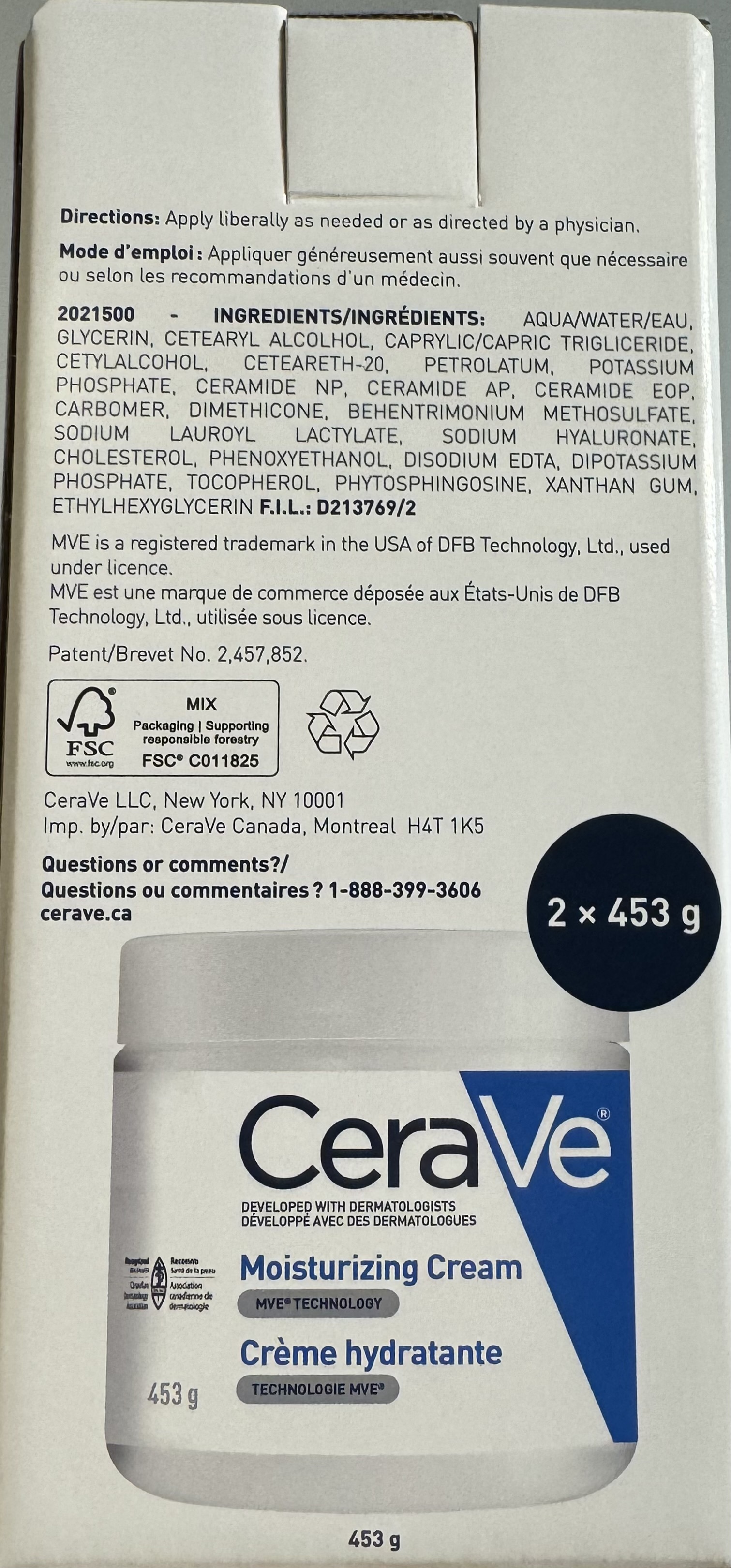 [香港現貨] CeraVe 全天候補水保濕霜453g x 2)
